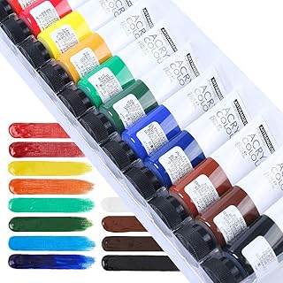 Craftamo Kit de Tubes de Peinture Acrylique 12 x 22ml. Kit de Peinture Acrylique pour Utilisation sur Toile, comme Peinture de Tissu, Peinture de Modèles, Peinture de Verre, ou Peinture à l'Argile