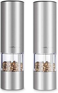 SIMPLETASTE Batterie Fonctionnant Moulin à Poivre Electrique avec Broyeur en Céramique Réglable, Acier Inoxydable, Silber, Lot de 2