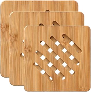 ZoneYan Dessous de Plat en Bambou, 3 Pièces Dessous de Plat, sous Plat Bois, Dessous de Plat Anti-Dérapant, Dessous de Plat Rond, Résistant à la Chaleur, Épaissir en 3 Tailles (Carré)