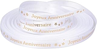 FLOFIA 50 Yards Ruban Satin Joyeux Anniversaire Blanc Bande Ruban Noeud en Polyester Bobine Ruban Happy Birthday Décoration DIY Cadeau Emballage Accessoire pour Fête Anniversaire