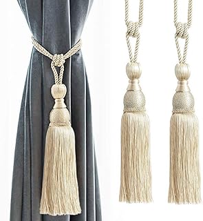 Fenteer 1 Paire D'embrasses Embrasses Rideaux Fermeture Pinces à Rideaux avec Longueur de Corde de 40 Cm - Beige