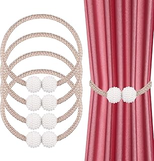 JIZZU 2Pcs Paire d'Embrasses de Rideaux Magnétiques, Forme de Boule de Perle Exquise, Accessoires de Salon, Embrasses de Rideaux, Retenues de Rideaux sans Perçage sur Mur, Chambre, Bureau, Hôtel