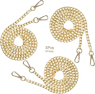 3 Pièces Chaîne de sac à main en métal, MERYSAN Chaîne de Sac à Chaîne Sangle Sac à Main Poignée Chaîne en Fer avec boucles, DIY mode Accessoire de rechange pour sac à main(Or, 47pouce/120cm)