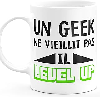 Mug Humour drôle Tasse a Cafe Cadeau Rigolo Original Humoristique Fun à Message pour Femme et Homme - geek level up - idée Cadeau ado Meilleure Amie Beau frère départ collègue Travail pour Noel